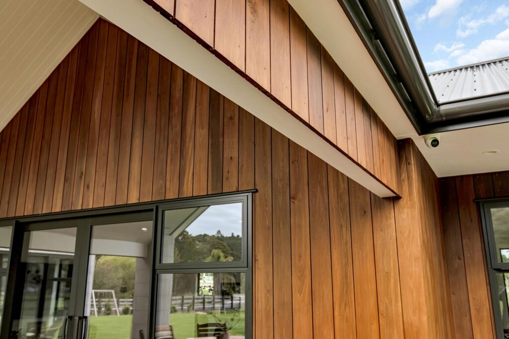 The home showcases a mix of brick and Taxon timber cladding, paired with Coloursteel roofing, offering both durability and visual appeal. A key architectural feature is the custom parapet, seamlessly integrated from the internal wall through the roofline-adding a modern twist to the home’s silhouette.
